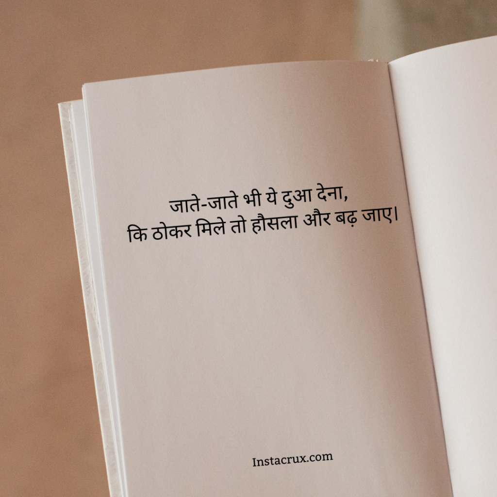 Motivational shayari for farewell in hindi विदाई के पलों को strength, courage और clarity देती है। इसमें stepping-forward, new life chapter, positivity और नए beginning की भावना शामिल है।