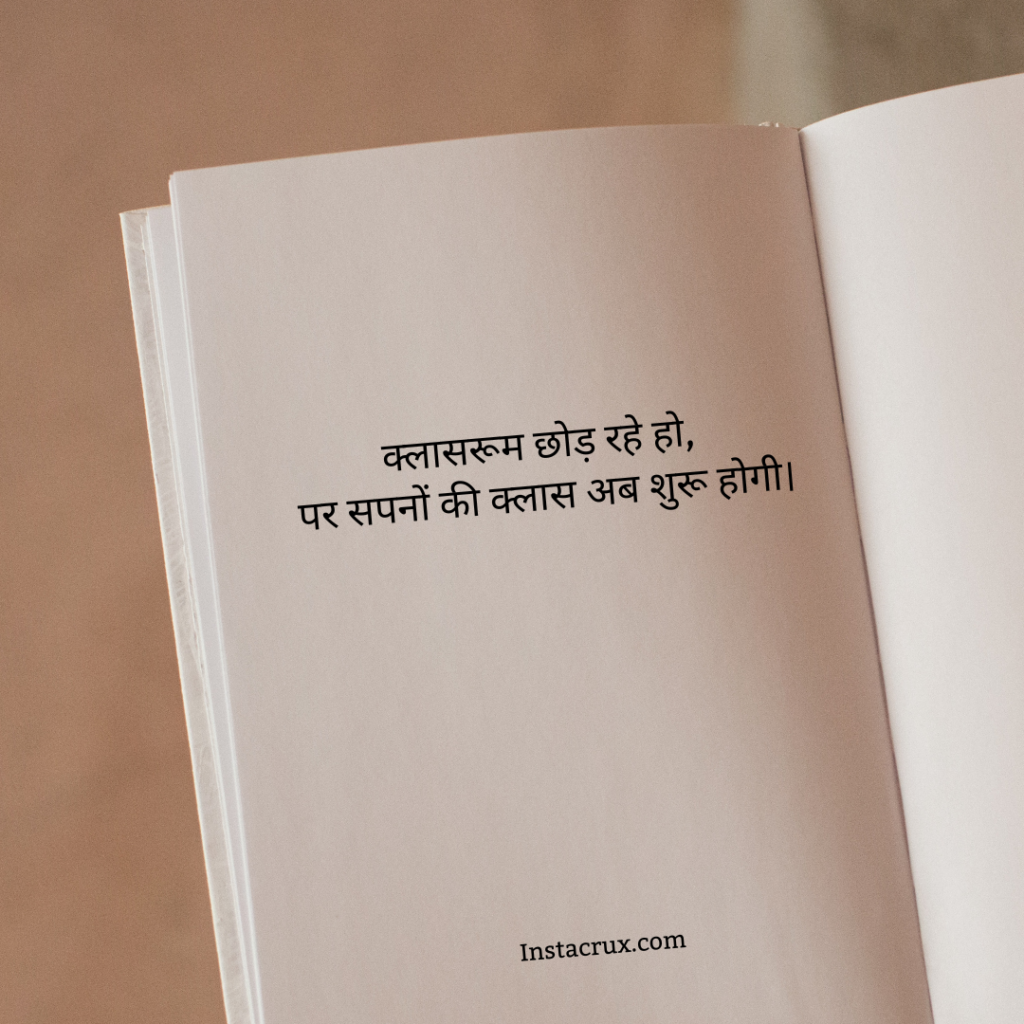 Motivational shayari in hindi for students for farewell party का मक़सद छात्रों को उनके अगले सफ़र के लिए प्रेरित करना है। इस सेक्शन में विद्यार्थी, farewell party, career, growth, confidence और life goals से जुड़े प्रेरणादायक शब्दों पर फोकस है।