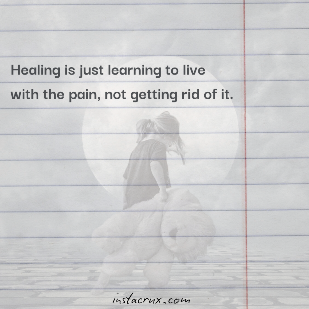 - Healing is just learning to live with the pain, not getting rid of it.