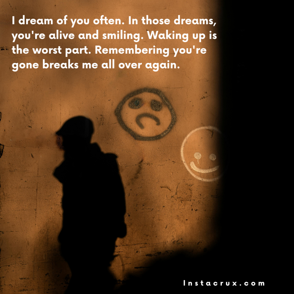 - I dream of you often. In those dreams you’re alive and smiling, Waking up is the worst part, Remembering you’re gone breaks me all over again.